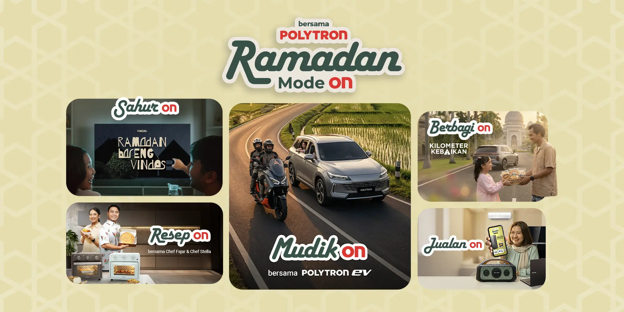 Program dukungan mudik Ramadan melalui posko mudik Polytron yang hadir di titik-titik strategis jalur mudik. Program ini dilengkapi dengan layanan informasi serta edukasi seputar tips berkendara aman dan nyaman menggunakan kendaraan listrik, demi perjalanan mudik yang lebih tenang dan berkesan.