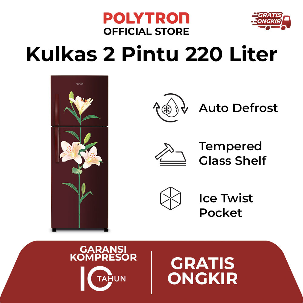 POLYTRON Kulkas 2 Pintu PRB 219R dibuat dengan material premium dan dilengkapi dengan garansi kompresor selama 5 tahun, memberikan jaminan kualitas dan ketenangan pikiran bagi penggunanya. Dengan konsumsi daya sebesar 100 watt, kulkas ini sangat hemat energi, menjadikannya pilihan ekonomis untuk rumah tangga maupun penggunaan di kantor. Dengan harga yang kompetitif, kulkas Polytron menawarkan kombinasi yang sempurna antara daya tahan, efisiensi, dan estetika.