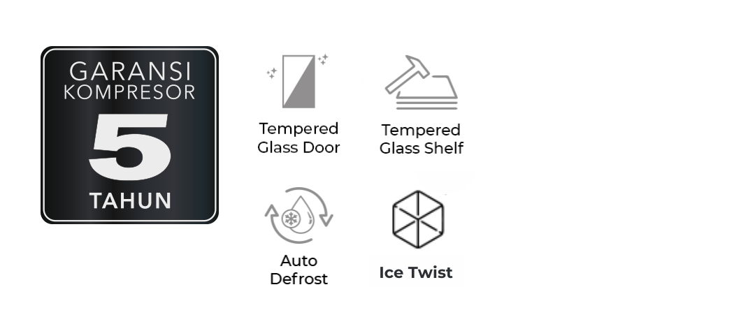 Dengan kapasitas 210 liter, POLYTRON Kulkas 2 Pintu ini menawarkan ruang penyimpanan yang memadai untuk berbagai kebutuhan makanan dan minuman. Fitur ice twist pocket dan sistem defrost otomatis memberikan kemudahan dalam mengatur penyimpanan dan menjaga kesegaran makanan lebih lama. Rak kaca tempered yang kokoh menambah kesan mewah sekaligus memastikan tampilan interior kulkas tetap bersih dan terorganisir dengan baik.