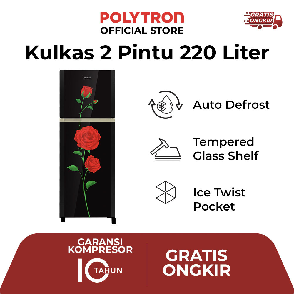Dengan kapasitas 220 liter, POLYTRON Kulkas 2 Pintu ini menawarkan ruang penyimpanan yang luas untuk kebutuhan harian Anda. Dilengkapi dengan ice twist pocket dan sistem defrost otomatis, kulkas ini memastikan makanan tetap segar dan mudah diakses kapan saja. Rak kaca tempered yang dimiliki kulkas 2 pintu ini dapat diatur tingginya, memberikan fleksibilitas tambahan untuk mengatur ruang penyimpanan.