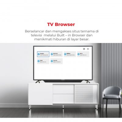 Berselancar dan mengakses situs ternama di televisi melalui Built – in Browser dan menikmati hiburan di layar besar.