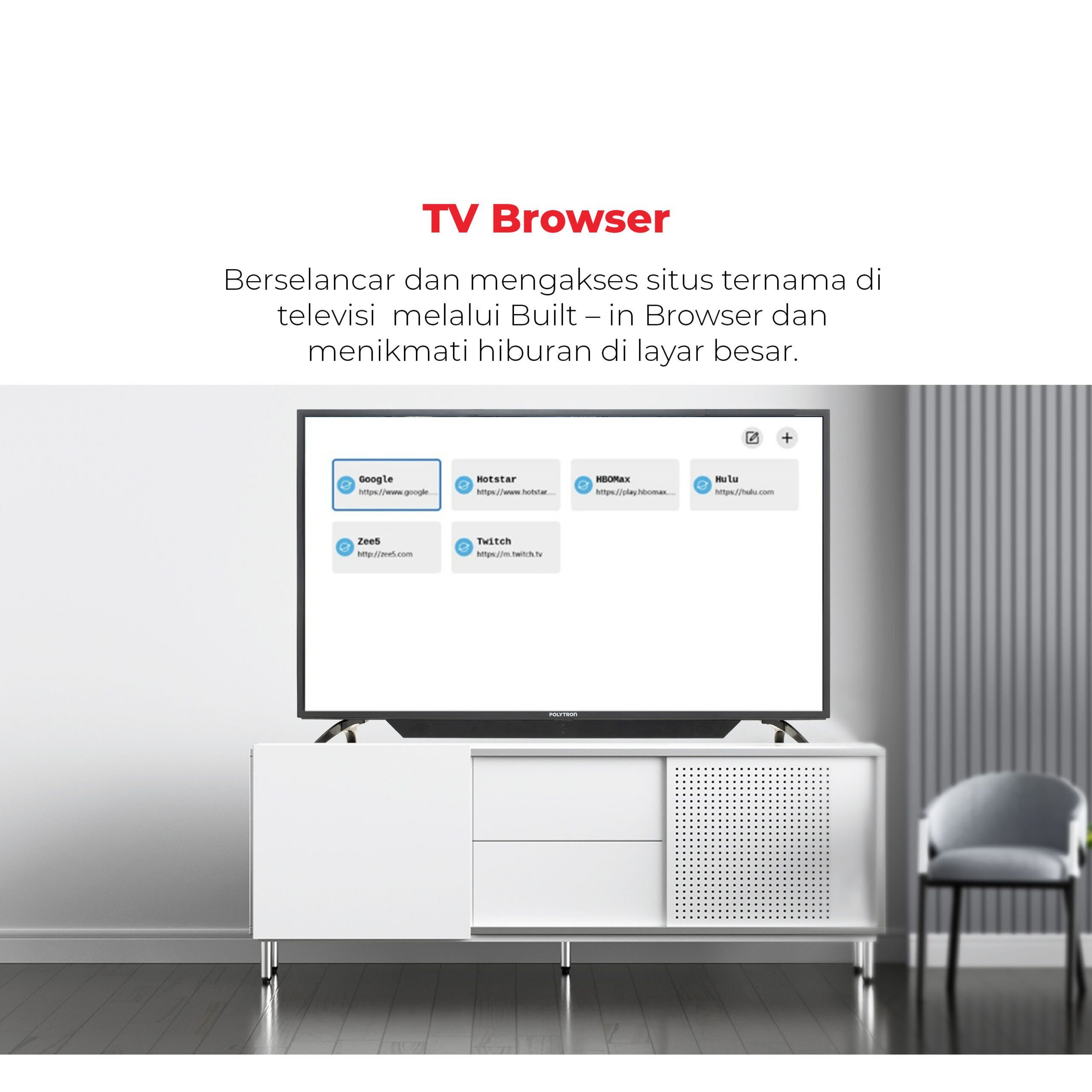 Dilengkapi dengan garansi 5 tahun yang mencakup panel LED, kena petir, sparepart, jasa, dan remote tv. Selain itu, Polytron memiliki layanan service center yang sudah tersebar di seluruh Indonesia. Sehingga akan membuat Anda lebih nyaman dan bebas khawatir.