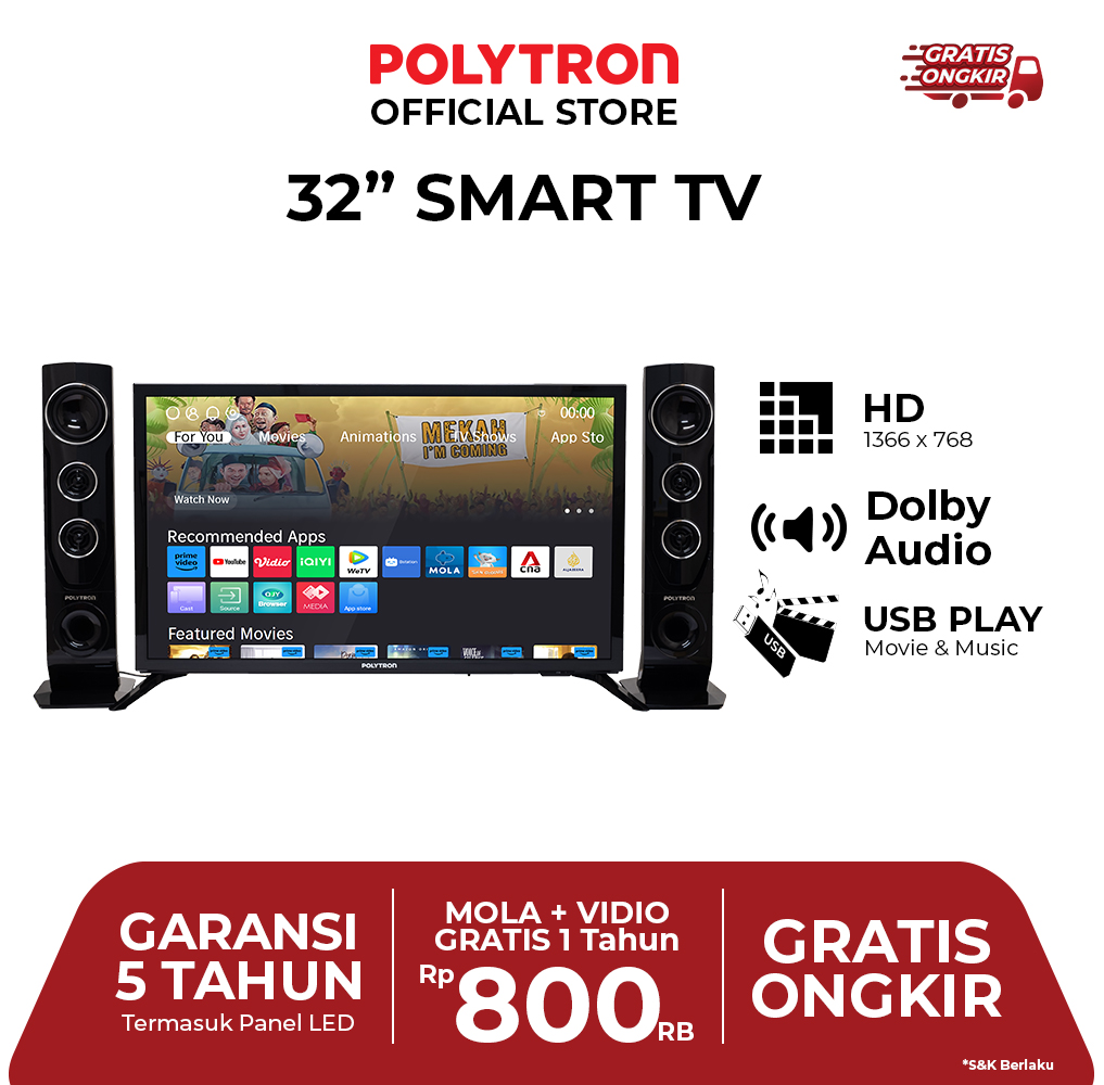 Dilengkapi dengan garansi 5 tahun yang mencakup panel LED, kena petir, sparepart, jasa, dan remote tv. Selain itu, Polytron memiliki layanan service center yang sudah tersebar di seluruh Indonesia. Sehingga akan membuat Anda lebih nyaman dan bebas khawatir.